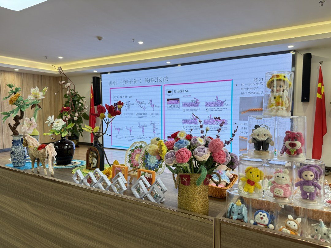 从生疏尝试到熟练操作,从零散线条到完整的小雏菊作品,每一位参与者都沉浸在手工创作的乐趣中,彼此交流心得、展示半成品,欢声笑语不断。大家在轻松愉悦的氛围里,不仅熟练掌握了基础钩织技能,解锁了全新手工特长,更在沉浸式体验非遗钩织技艺的过程中,感受到传统手工文化的独特韵味,进一步拉近了党群之间的距离。