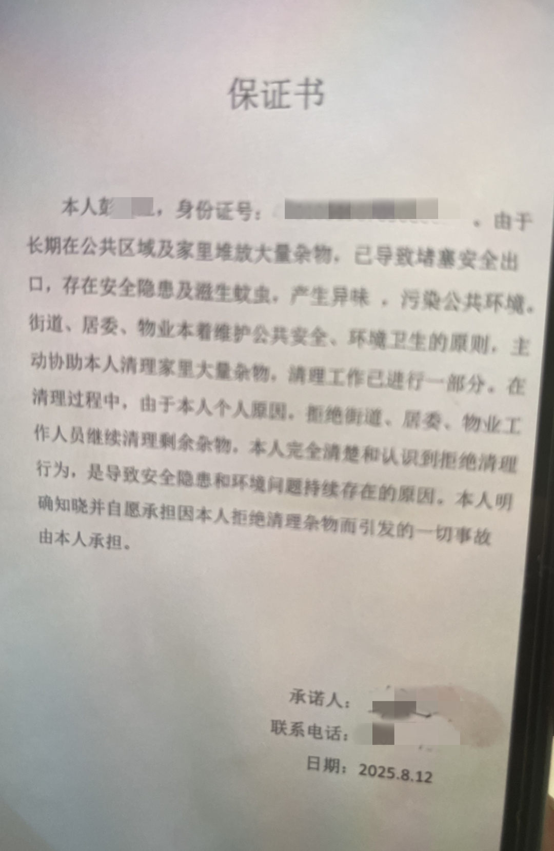 彭姨曾写下保证书,但并未兑现。