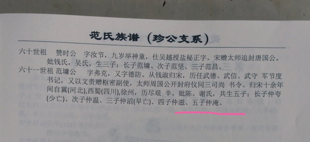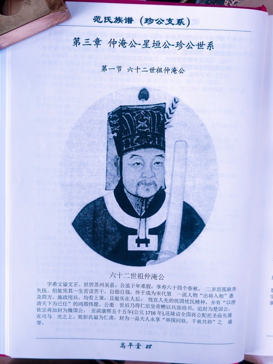根据族谱记载,范仲淹是六十二世祖。