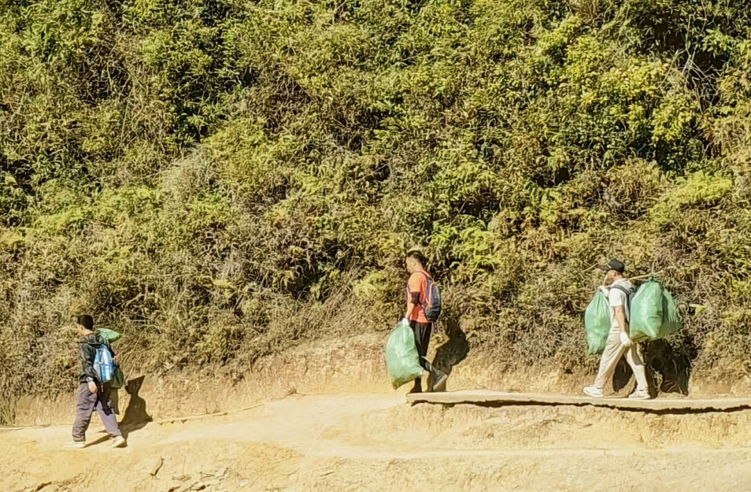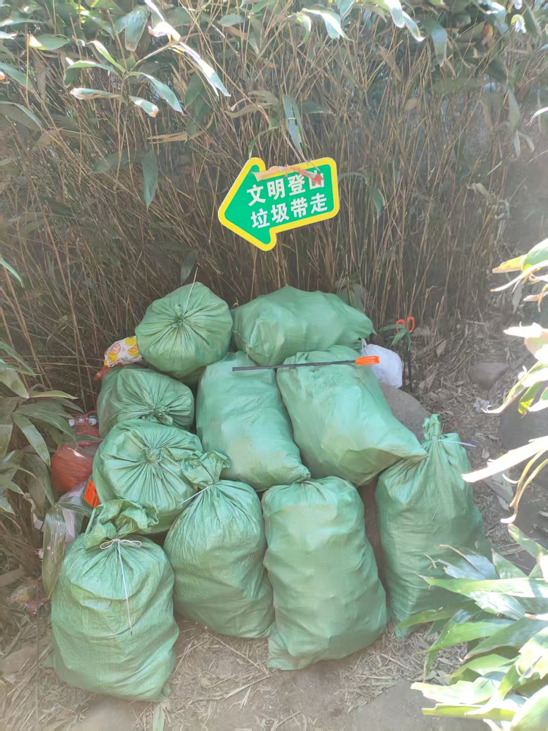 通过精心组织,周密部署,并保障安全高效,活动路线以大猪兜水库为起点与终点,沿登山步道向主峰方向进行清理并折返,全程约6公里。为确保活动安全、有序、高效开展,进行了周密的前期准备,提前发布了招募通知,广泛发动团员团干、干部职工及热心志愿者。派潭镇林业组安排护林员担任向导,应急救援队全程提供线路指引与安全保障,七境村委负责落实垃圾的后续清运处理,形成多方联动、协同推进的工作格局。