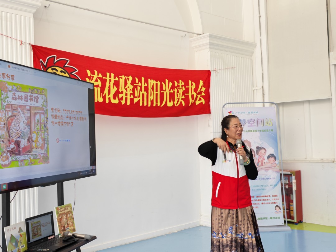 作为广少图绘本馆周三常态化的“一老一小”阅读专场,“流花驿站阳光读书会”的银龄志愿者团队首次走进广少图绘本馆,活动现场暖意融融。区老师是退休小学高级教师,曾获“广州好人”荣誉称号,退休后始终坚守流花湖公园志愿者驿站,为0—18岁青少年开展“阳光读书会”。在活动中,她以标准的普通话与粤语双语讲述,既引导孩子们静心读图、感受绘本之美,又用富有韵律的诵读带领全场品味书中佳句,让岭南乡音与书香交织成独特的文化记忆。