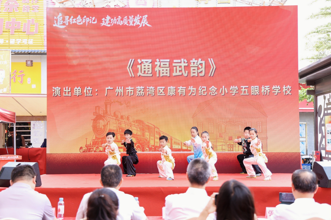 当天,康有为纪念小学南塘学校的同学们带来舞蹈表演,用灵动舞姿展现石家少年的朝气蓬勃。来自广州茶业协会的工作人员带来合唱表演,用铿锵歌声致敬百年工运。康有为纪念小学五眼桥学校的同学们带来武术表演,以刚劲英姿展少年风采,以热血豪情传红色精神。百年工运的精神火种,已在青少年中生根发芽。“我们学校就在火车站附近,经过生锈的铁轨时,就知道它年代很久远了。家长和老师给我们讲了它的历史,这个老车站和这一段铁轨,让我们感受了中国铁路的飞速发展和科技的进步。”康有为纪念小学南塘学校三年级学生肖佳怡、刘栩幕表示。