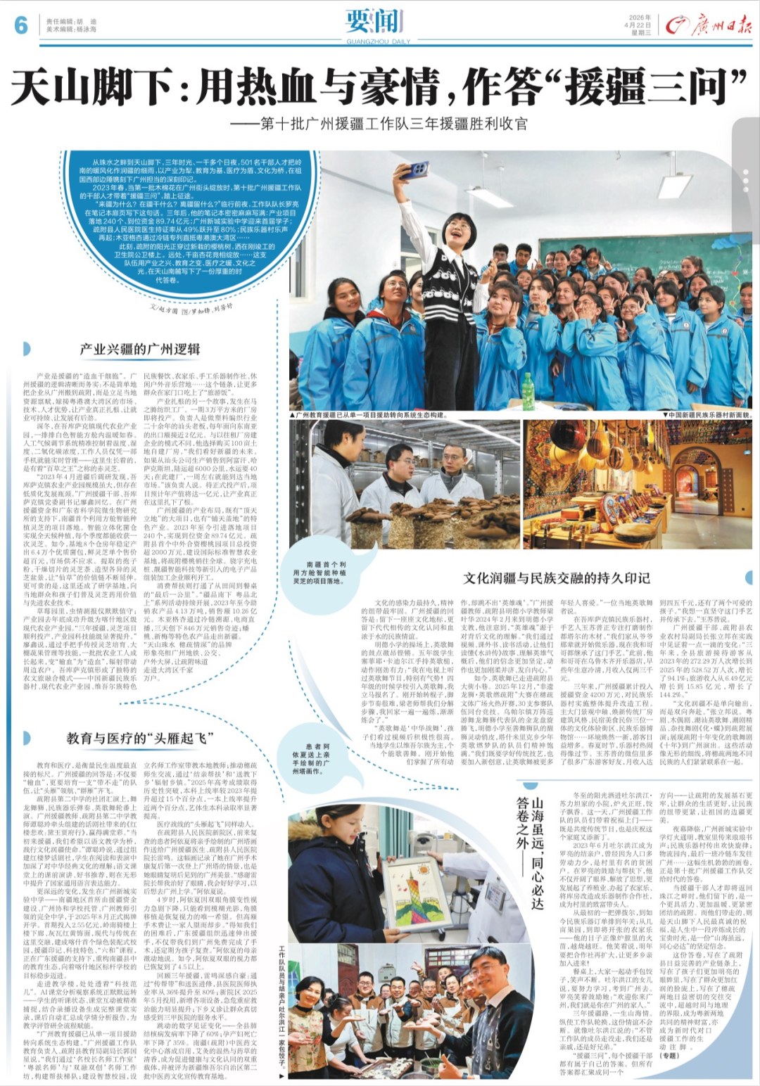 这份答卷,写在了疏附县日益完善的产业链条上,写在了孩子们更加明亮的眼眸里,写在了群众更加红润的脸庞上,写在了穗疏两地日益密切的交往交流中,超越时间与地理的界限,成为粤新两地共同的精神财富,亦成为新时代对口援疆工作的生动注脚。