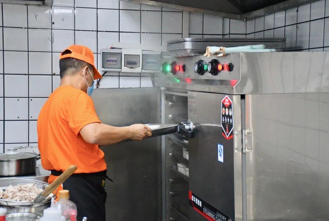4月20日上午11点,位于海珠区滨江西路246号的海幢街福仁社区饭堂缓缓飘出了饭菜香,厨师们正紧锣密鼓地烹饪街坊爱吃的各种家常菜品。