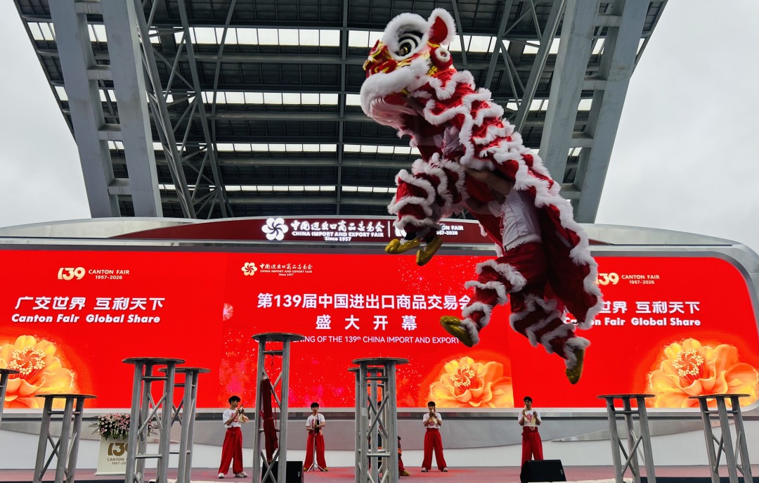 4月23日9时,天空飘着小雨,前来参加第139届广交会第二期的全球客商络绎不绝。本期广交会聚焦“品质家居”,展览面积51.5万平方米,共有展位2.5万个,集中展示家庭用品、礼品及装饰品、建材及家具3大板块。锣鼓声声间,舞龙舞狮上场,非遗布马舞的飒爽英姿吸引不少客商驻足观赏。