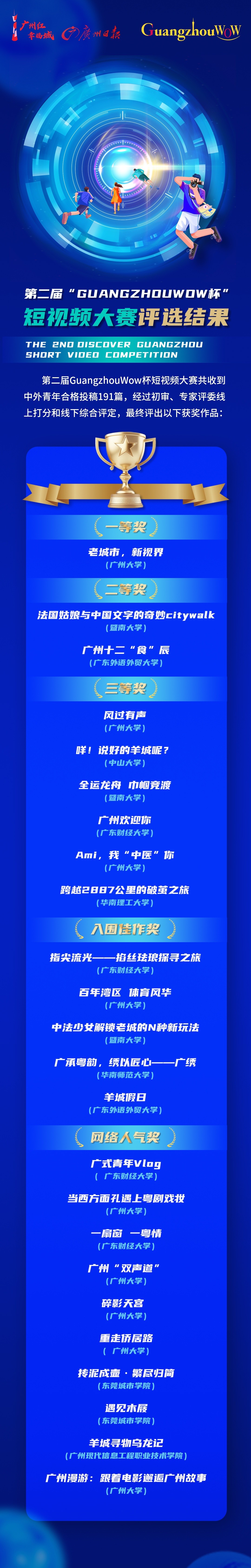 近日,第二届“Guangzhou Wow杯·Discover Guangzhou——中外青年眼中的城市魅力”短视频大赛评选工作圆满落幕,各奖项名单正式揭晓。