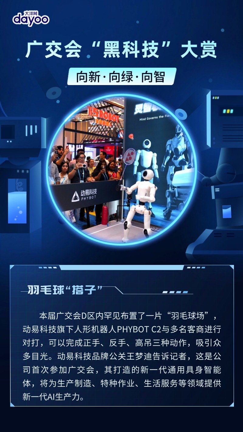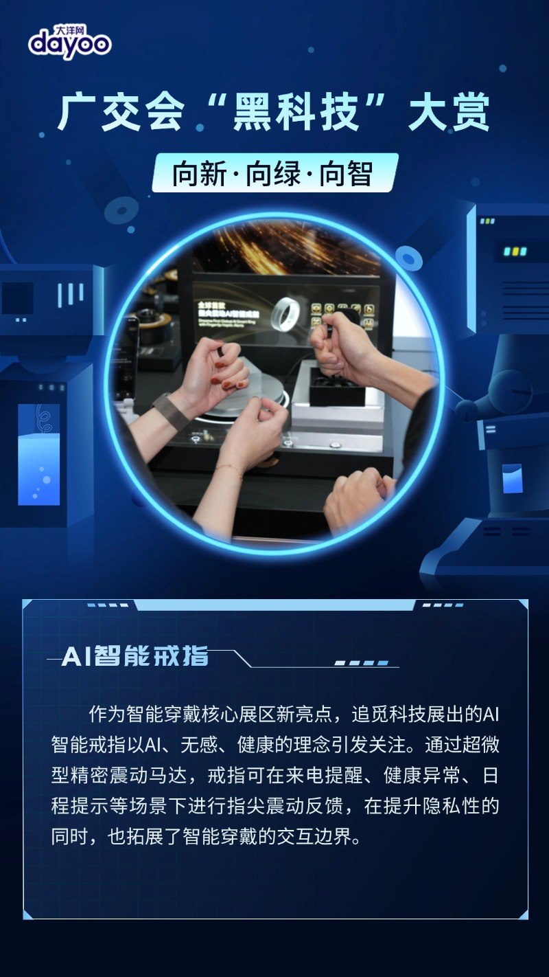 第139届广交会正在火热进行中,今年的展馆里不仅有琳琅满目的商品,更是一场未来科技的盛宴!从“会打羽毛球”的人形机器人到“可监测健康异常”的AI智能戒指,中国智造正在刷新全球客商的认知。一组海报,看这些“硬核”又“温情”的黑科技,你最想体验哪一个?