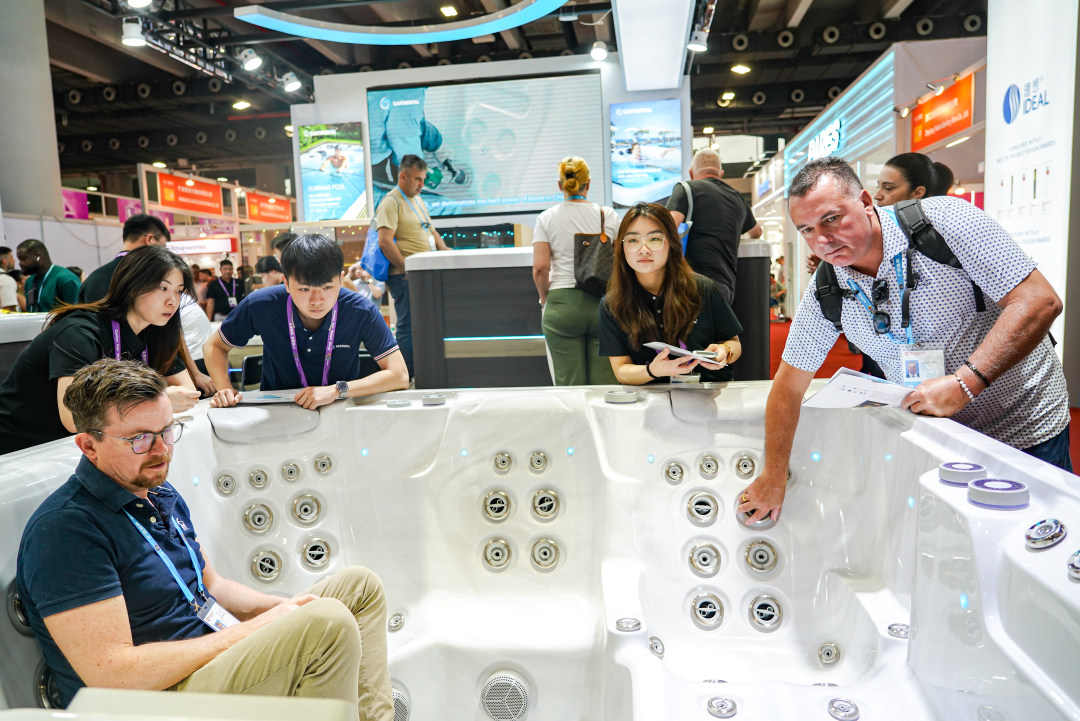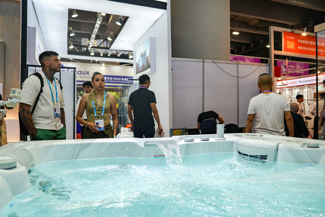 境外采购商们在“组队”沉浸式体验按摩浴缸。