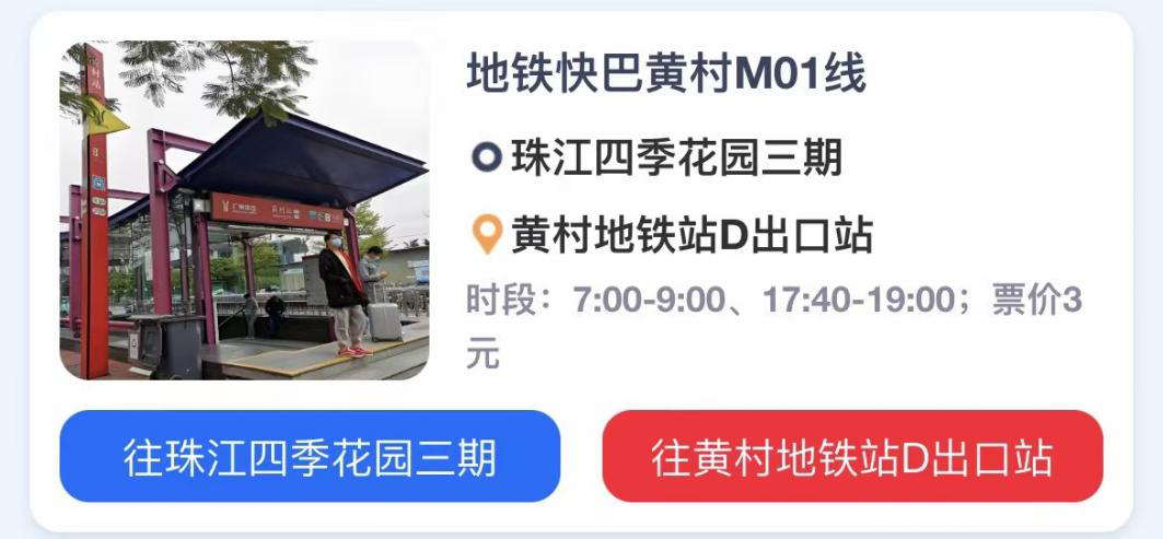 本次开通的地铁快巴鱼珠M01线,是巴士集团落实2026年广州市十大民生实事,完善公交地铁“两网融合”的重要举措,精准破解富颐华庭片区居民地铁接驳“最后一公里”难题。该线路全程设4个站点,往返走向为:富颐华庭↔茅岗小学↔茅岗南路↔鱼珠地铁站C口,采用短距离、高频次、快周转运营模式,将出行时间从约35分钟,缩短至约20分钟,大幅提升通勤效率。