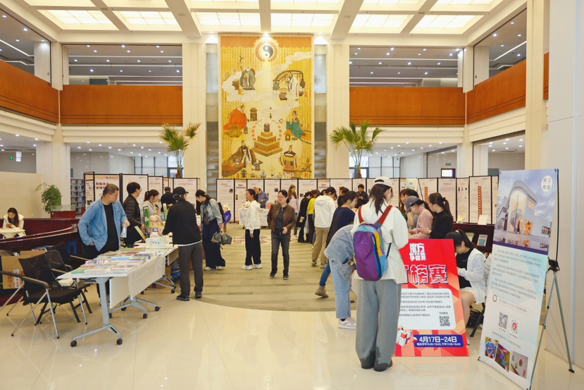 华东理工大学图书馆内,“书香漫校· 文化市集”同步热闹开市。本次市集活动联合上海世纪出版集团及华东理工大学出版社,汇聚多家知名出版机构与书店,集中展销文学、艺术、科技等领域的精品图书及特色文创产品。现场更有传统文化与手工艺体验区,师生热情参与DIY漆扇、书签、香囊、干花等活动,参与者还有机会赢取专属主题文创,收获别样阅读乐趣。传统与现代相辉映,愿氤氲书香,飘满校园。