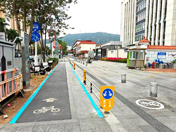 非机动车道的完善不仅是道路通行空间的优化,也是深圳构建“通山、达海、连城”绿色交通网络的关键一步,更是切实保障“人非机”各行其道的重要因素。深圳交通运输局大鹏管理局结合辖区“快旅慢游”特点和居民实际需求,精准摸清骑行“脉络”中的“堵点”,秉持“系统谋划、分类施策”原则,持续开展重点片区非机动车道设施完善,进一步打通串联景区、联系山海的“毛细血管”,实现“人非机”路权更加清晰、通行效率和体验持续提升。