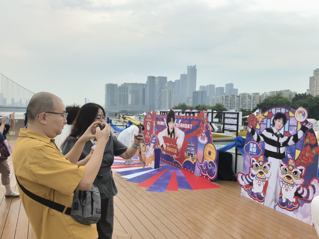 4月17日,海心沙西区码头,一艘特别的周深“痛船”停靠在岸边。“快来,我们一起拍照。”“哇,好多打卡牌,好好看!”船只前,歌迷朋友纷纷拿起手机拍照记录。据悉,此次周深“痛船”游珠江活动由本地粉丝组织“广寒宫生米群”联合广州公交集团客轮有限公司共同策划,活动期间游船会播放周深曲库音乐,以配合歌迷合唱、合照、视频录制等活动。“此次‘痛船’活动,是我们抓住演艺经济风口,探索‘粉丝经济+文旅融合’的创新实践。”客轮公司相关负责人说。