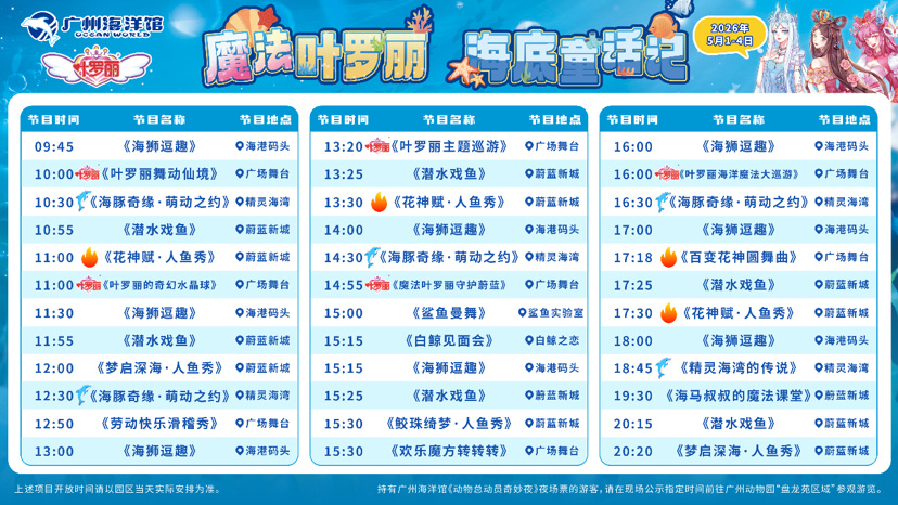 广州海洋馆“五一”假期活动节目单(具体项目时间以景区当天实际安排为准)