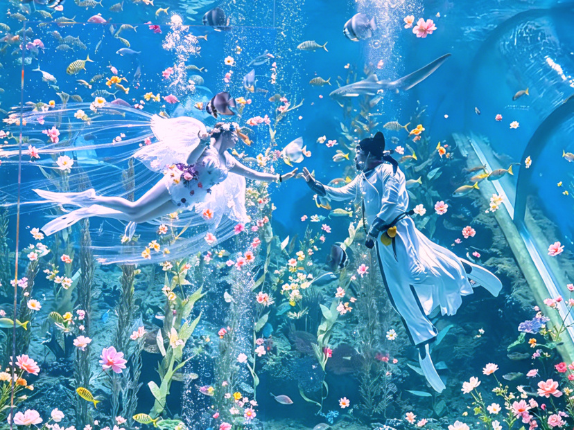 广州海洋馆重磅推出全新水下剧目《花神赋》。该演出以诗仙李白醉入深海、遇见花神女夷为叙事线索,融入《清平调》吟诵、水下花朵绽放及四季人鱼共舞等元素,以国风美学赋能文旅新场景,成为“五一”期间不可错过的沉浸式打卡项目。