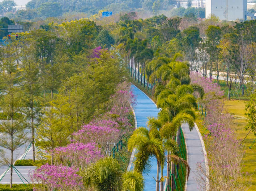 在“红树水湾”节点,开阔茂盛的绿色景致让人纷纷停下驻足。这里并非简单的绿化,而是基于耐盐碱、抗台风挑战构建的立体生态群落。中交二航局现场负责人秦星介绍:“我们精挑细选超过230种植物,其中九成以上为凤凰木、假苹婆、黄槿等乡土适生树种,并创新引入银叶树、海滨木槿等耐盐碱植物,确保在滨海环境中长期稳定生长。”