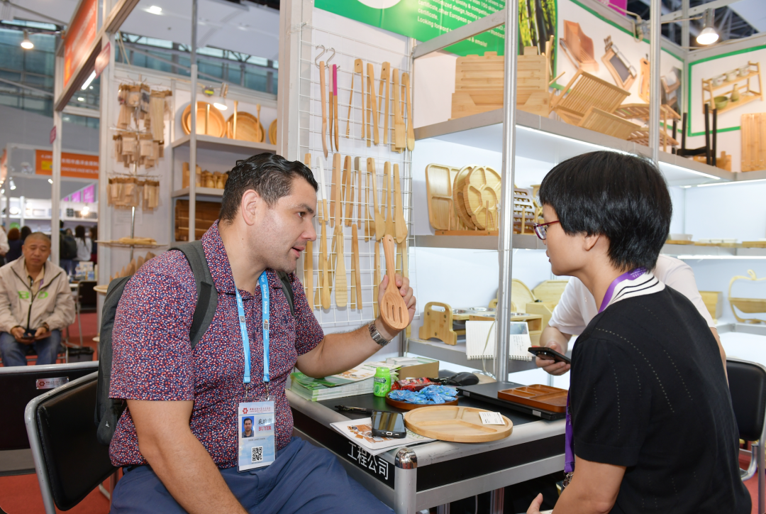 在江西旺德福家居用品有限公司展位前,一位美国采购商拿着一把木勺端详。企业相关负责人告诉他,这把勺子传承了“木勺技艺”非遗传统,依托“竹木加工自动断料成型一体机”等核心技术制成,产品远销欧美30余国,2024年前4个月出口额达175.66万美元。福建双羿竹木发展有限公司参与制定《竹牙刷》行业标准,拥有多项国内专利及欧美发明专利,技术实力雄厚。