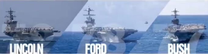 帖文称,随同其舰载机联队一同部署的“亚伯拉罕·林肯”号、“杰拉尔德·R·福特”号和“乔治·H·W·布什”号航母,共搭载了超过200架各型飞机及1.5万名海军和海军陆战队员。