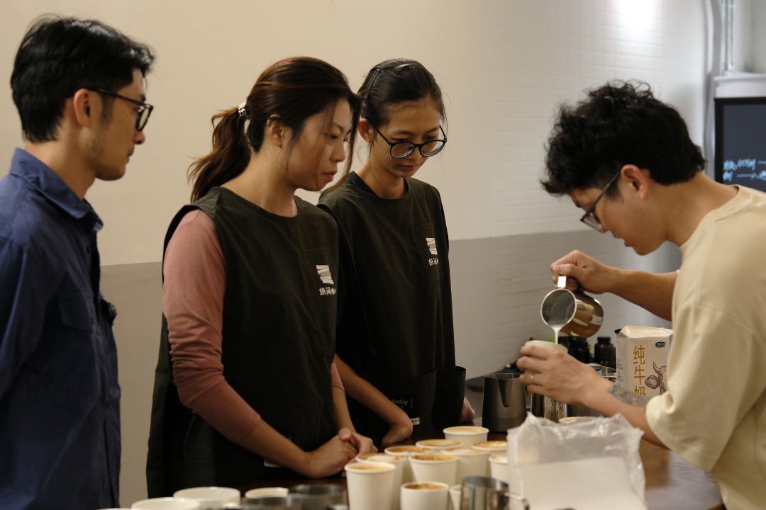 三楼是咖啡学院,金属与原木相融的操作台,咖啡机、磨豆机、手冲器具错落有致。这里是许多人咖啡梦的起点,从基础咖啡知识,到手冲入门、意式萃取、拉花技艺,零基础爱好者亦可循序渐进。“我们希望把织间打造成咖啡梦想基地,在这里,大家不仅能喝咖啡、品咖啡,更能从一颗豆子开始,亲手制作咖啡,感受咖啡文化的魅力。”主理人Ken说道。