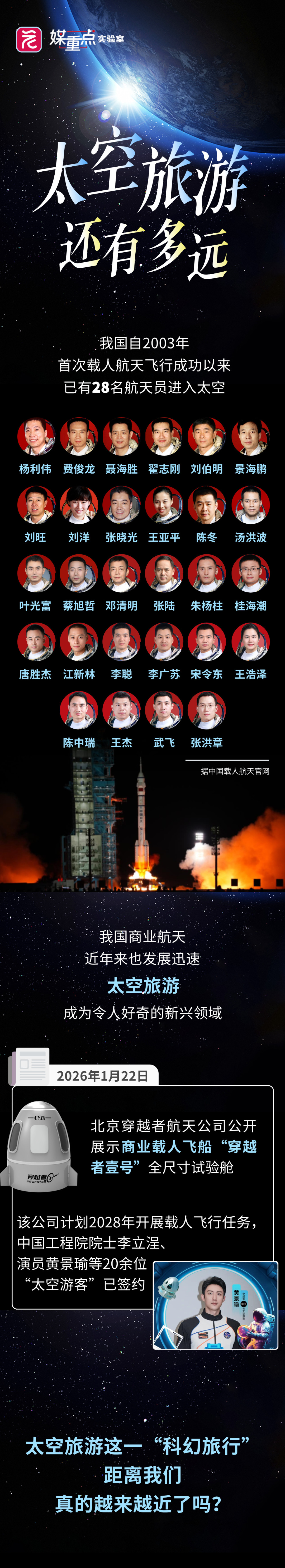 截至目前,我国已有28名航天员进入太空。与此同时,我国商业航天不断发展。普通人前往太空的道路,也在铺就。