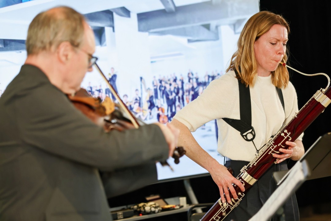 这些“无畏”的小朋友来自广州市海珠区东风村第二小学。4月23日这个下午,他们用歌声迎接三位远道而来的特别客人——巴黎管弦乐团团长克里斯蒂安·汤普森及中提琴家弗洛里安·瓦莱兹和低音巴松演奏家阿姆雷·利博尔德,而演奏家们回赠他们一场温馨、有趣的音乐互动。