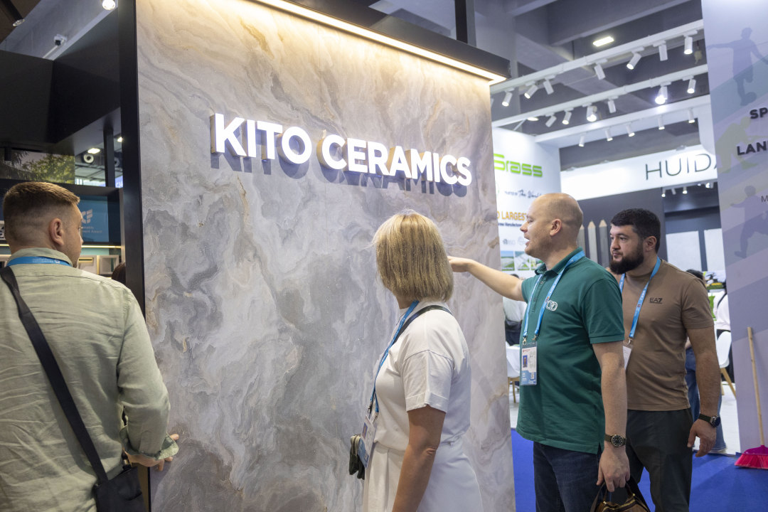 比如索菲亚的展位前,一位中东采购商反复摩挲着岛台台面的木皮纹理。他或许不知道,这片“见木不见漆”的天然木皮,背后是一套工业4.0标准的智能工厂集群,和缩短至7—12天的交付周期。细节里的竞争力,往往藏在消费者未曾察觉之处。当欧思丹的负责人谈起“第五次参展”时,语气里少了早年的急切推销,多了几分从容——企业已建起自主品牌的海外渠道,正从“产品出口”向“品牌出海”转身。这种转变,不是口号,是广交会一届一届谈下来的订单、磨出来的信任。金意陶的莱姆石系列旁,“国家级绿色工厂”的标识并不显眼。但绿色低碳已内化为企业的底层逻辑,从能源结构优化到生产流程再造,“双碳”目标正重塑制造业的基因。