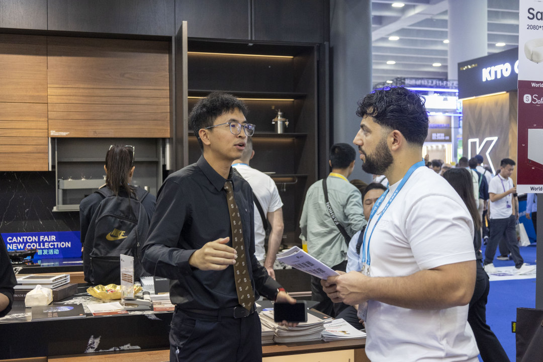 记者走访发现,展馆内,不同肤色的采购商拖着行李箱穿梭于展位之间,时而俯身端详产品细节,时而与参展商交谈问价,各种语言的交谈声此起彼伏。