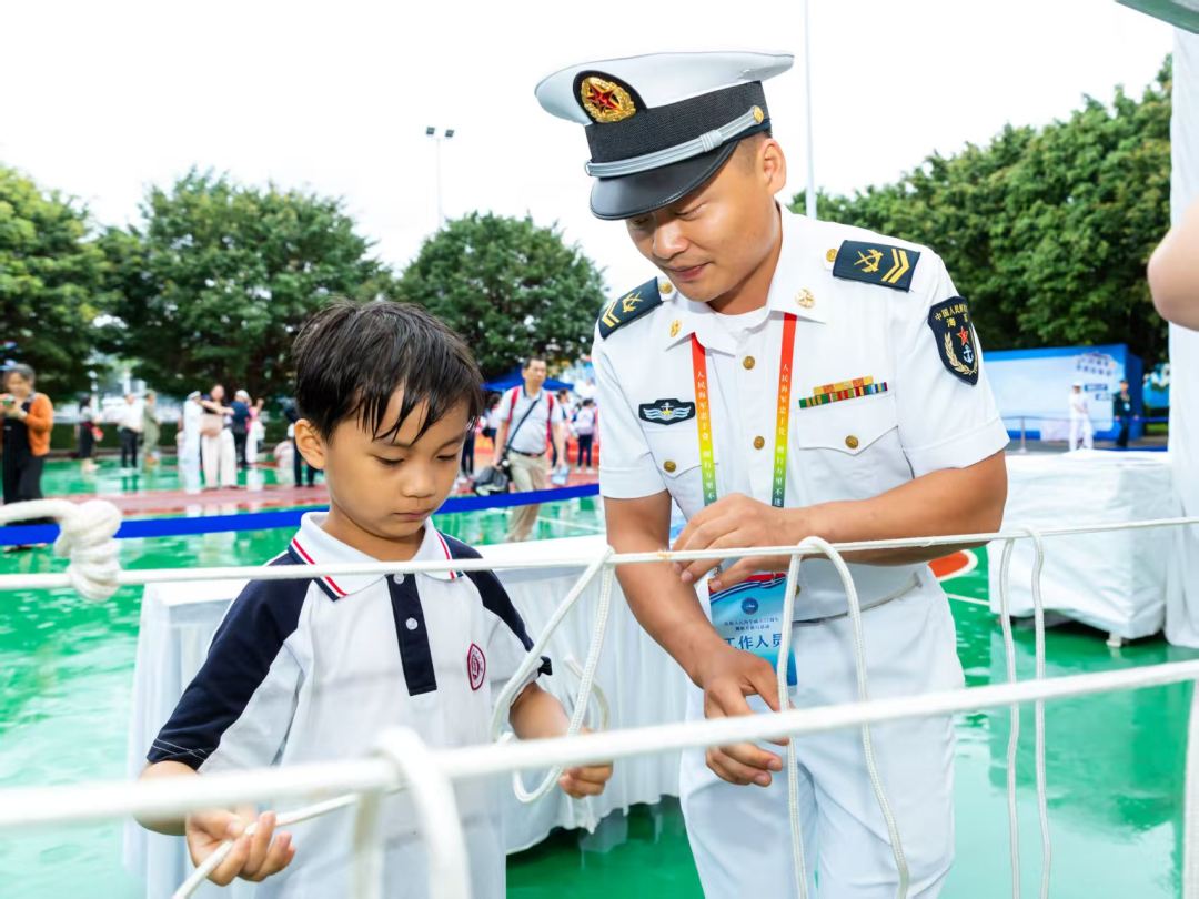 在海军官兵和讲解员的带领下,人群沿着舷梯登上舰艇,近距离观摩舰载装备、了解舰艇性能。“这堂生动的‘海洋国防课’让孩子们兴奋不已,收获满满。”天河区华彦幼儿园园长邬伟兰说,这样的亲身体验,在幼小的心灵中播下了爱国强军的种子。