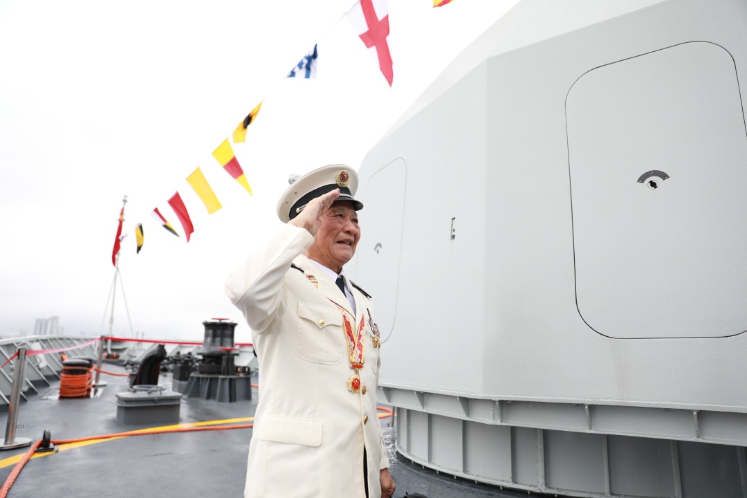 “人民海军过‘生日’,我特地‘回家’,要穿得正式一点。”老人挺直腰板,缓缓举起右手,向着迎风飘扬的八一军旗敬了一个军礼。“我入伍几个月就参加了海战,那时候我们的611艇排水量不足100吨,只能不断抵近敌舰。”彭德才说,“这几十年,人民海军发生了翻天覆地的变化,从航空母舰到万吨大驱,这些先进的武器装备,以前我们想都不敢想。如今,我感到很振奋。”