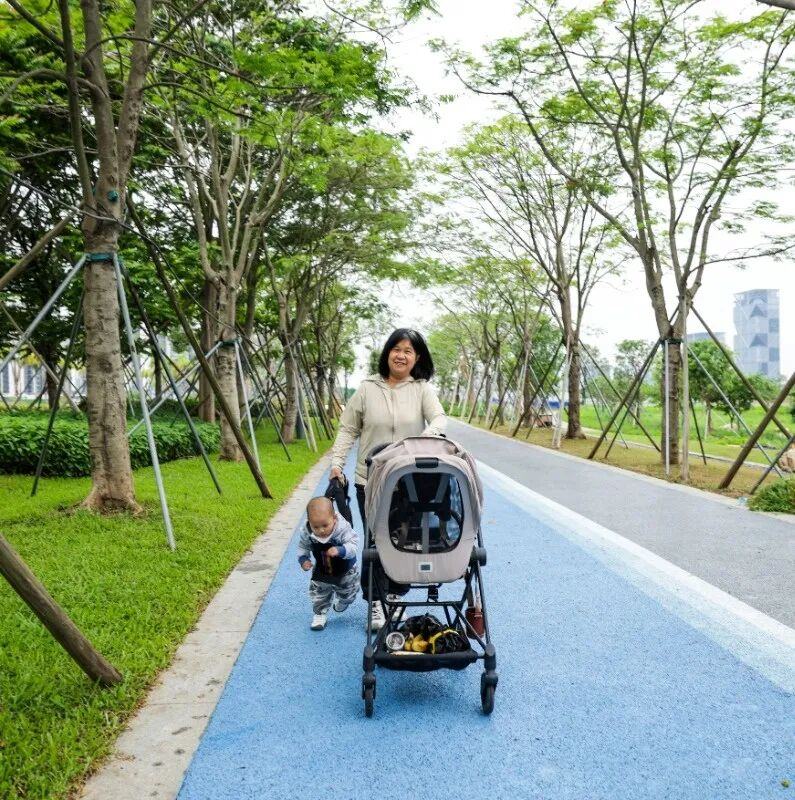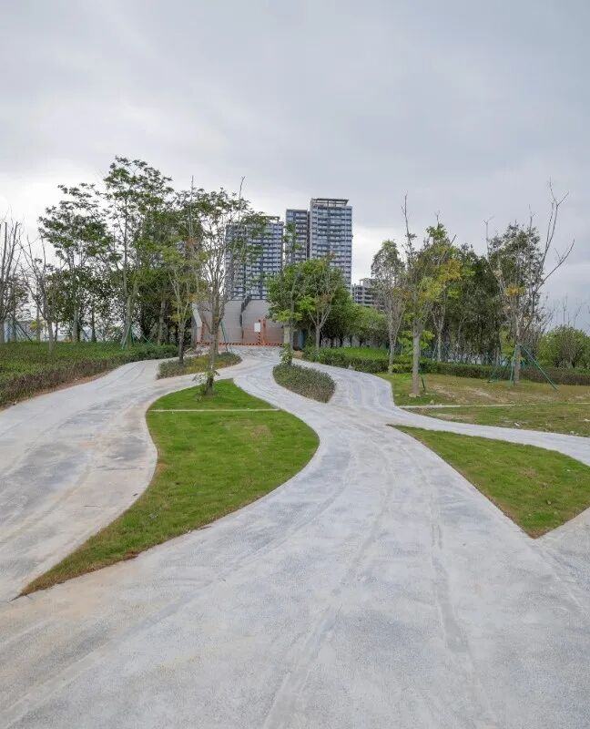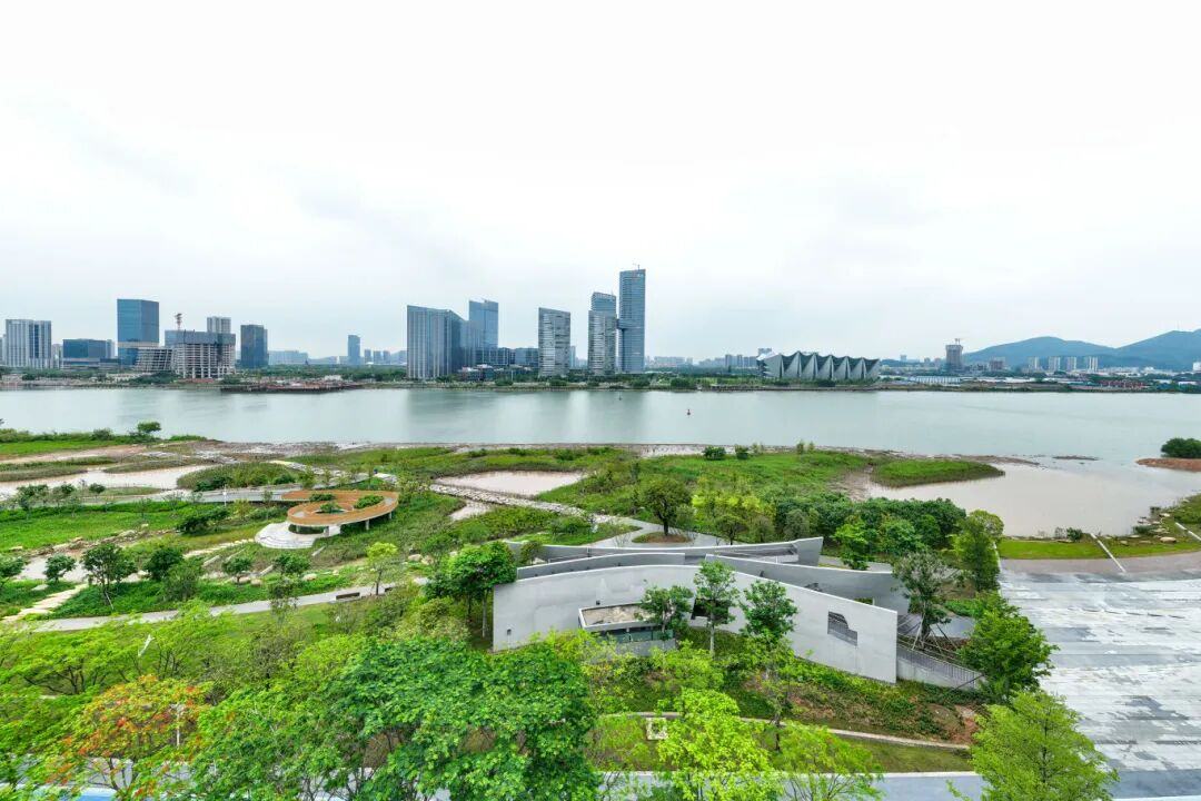 沿途景观层次不断切换,花廊架、阳光草坪,再到开阔视野远眺现代楼群,原生态芦苇丛与红树林斑块让野趣与精致兼得。