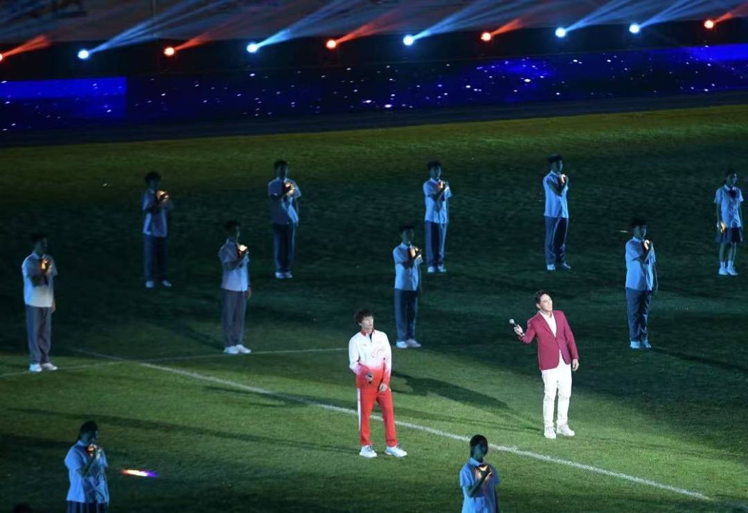 随后,球场聚焦南派足球标志性人物交接足球仪式,传承“志行风格”,容志行、欧伟庭、麦超、区楚良、卢琳5位足球名宿接力传球,最后将足球传给少年,展现南派足球的薪火相传,随后,足球少年一脚远射,越秀山体育场的门楼化身巨大的墙体秀,用光影展现新中国成立后广东足球威水史。