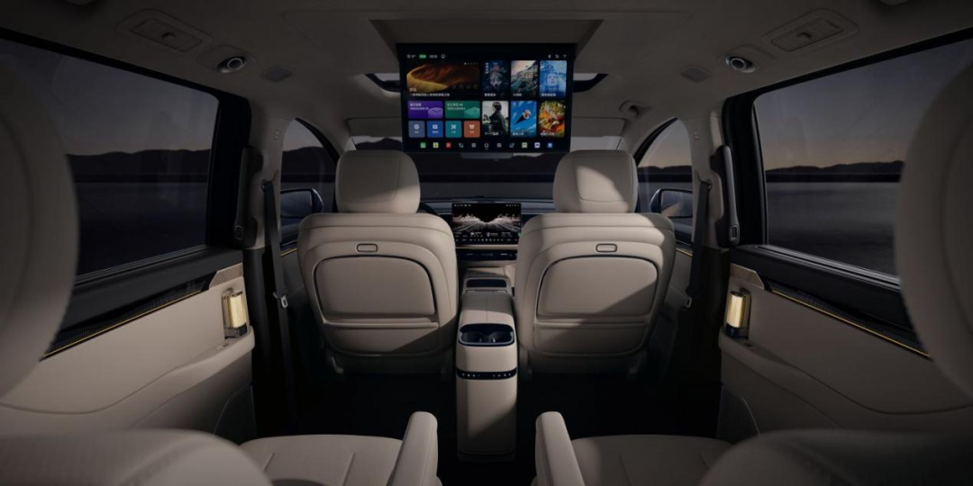 智能座舱方面,搭载新一代星河智舱,采用ADiGO 6.0系统,基于端云一体AI大模型、高通8295高算力芯片,并融入Deepseek功能,可实现复杂指令拆解、主动推荐餐厅、规划行程、预约车位、取号排队等任务。车内配备四屏智能交互,其中17.3英寸二排吸顶屏配合零重力座椅、车载冰箱、22扬声器ADiGO Sound音响,形成“超级影视厅”。