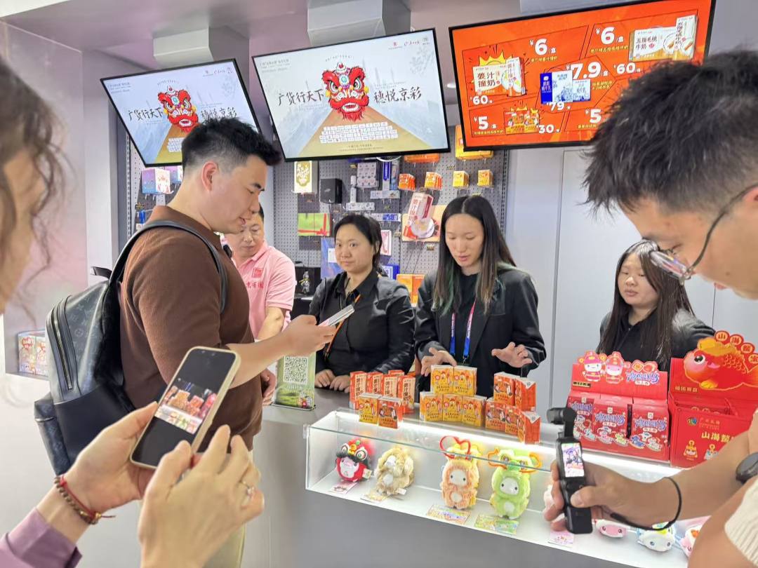 同时随行的还有广州“必购必带”城市礼物,广货展位上的海报向来往观众与嘉宾展示了入选城市礼品的40个广货品牌,尽显广货宝藏品牌的岭南魂、商业脑、创意心。