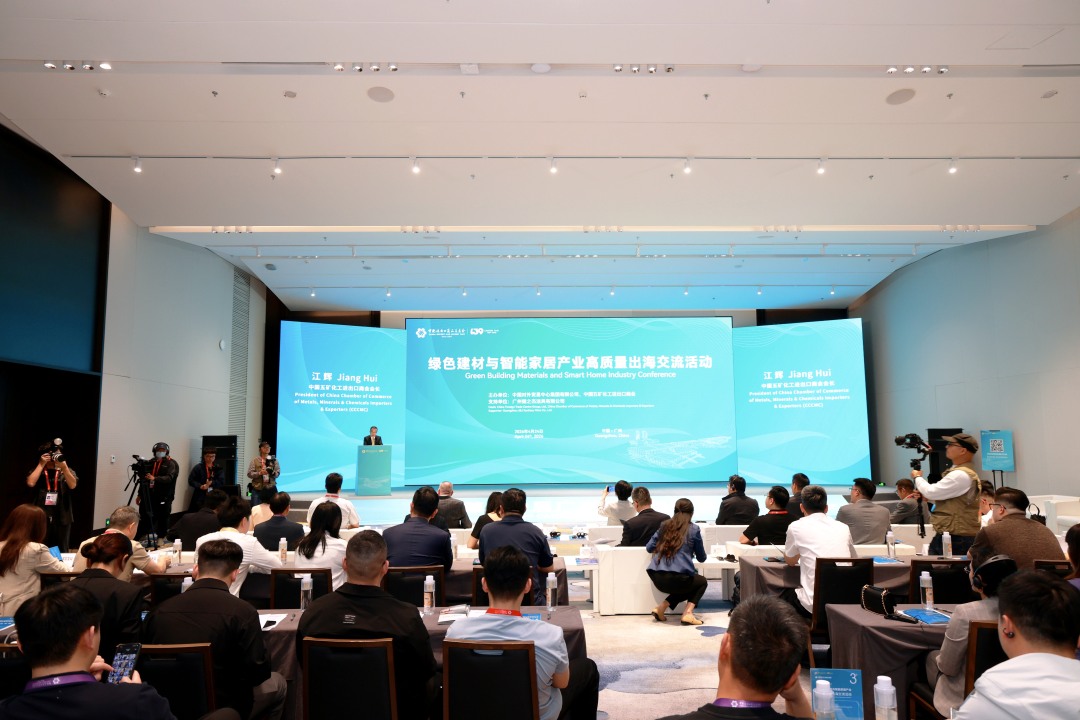 中国五矿化工进出口商会会长江辉在致辞中指出,全球绿色低碳转型与智能技术正深刻重塑行业格局,我国绿色建材与智能家居已形成完整高效的供应链,产品成为高品质、绿色智能的代名词。活动以务实对接为特色,旨在为好产品找到好伙伴,助力企业从“走出去”迈向“走得更稳、走得更远”。