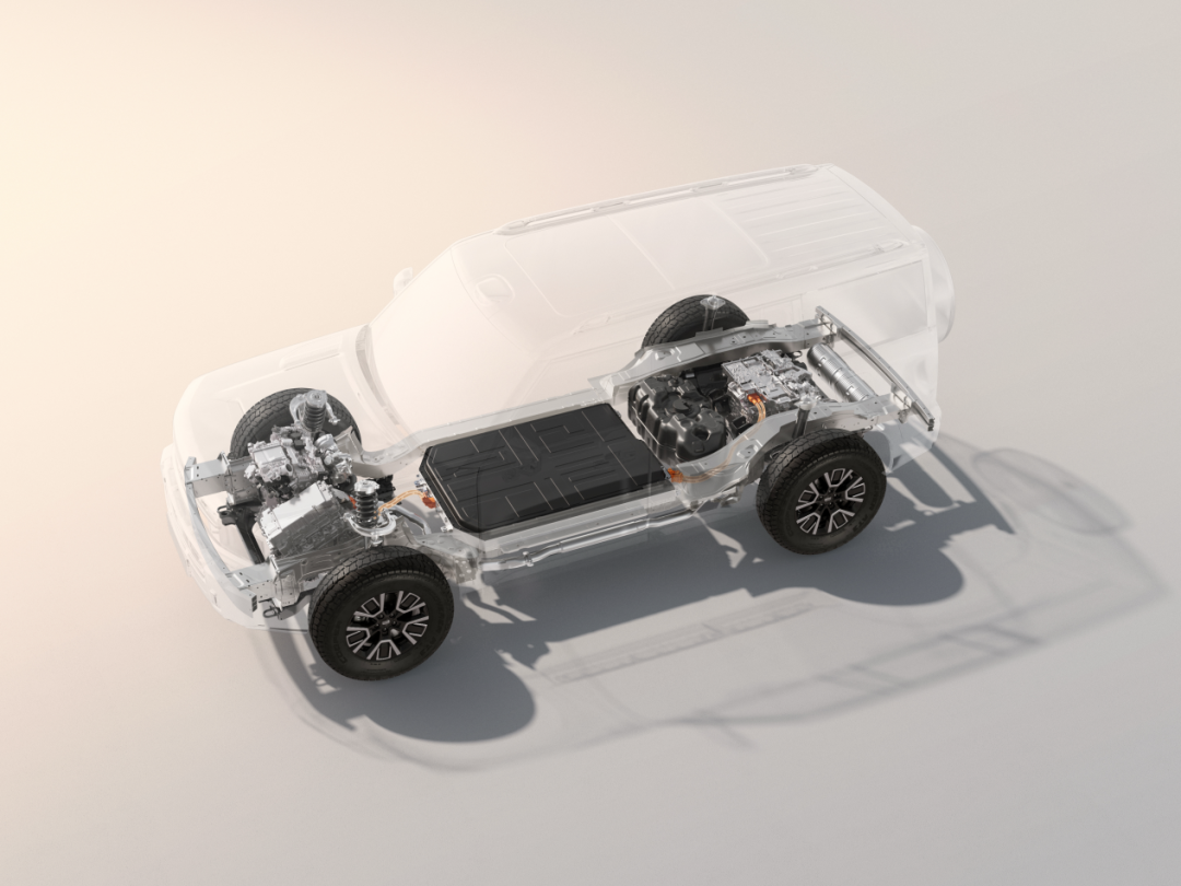 另一项重要首发为吉利首个原生新能源越野架构,该架构凝聚品牌40年技术积淀,依托全域AI体系实现AI智能扭矩分配、全地形模式、一键智能脱困、车身姿态主动调节等核心功能,被誉为“AI全地形架构之王”。架构坚持原生正向研发,拒绝“油改电”,通过高空间利用率三电布置、电池6层防护、50:50前后轴荷比、油电气分离设计,平衡越野性能、城市舒适与行车安全。动力上搭载前P3电机+后双P4轮边电机,综合功率超1000匹,零百加速进入4秒级,配合智能扭矩分配与差速锁功能,轻松应对复杂越野路况,从底层重构新能源越野体验。