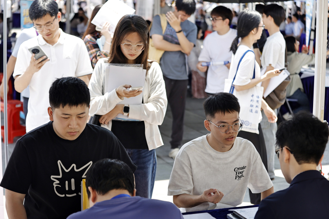 在招聘会现场,不少应届毕业生穿梭其中,与企业招聘人员热情交谈,充分了解企业人才需求和岗位情况。