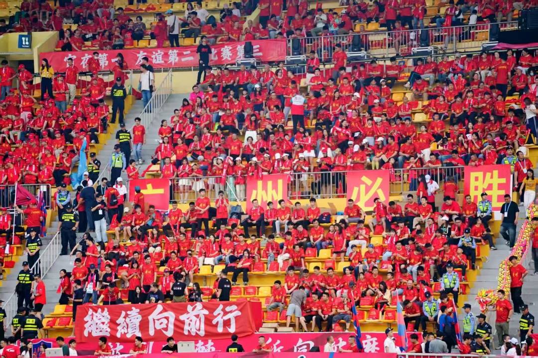 来到越秀山现场,看台上那片红色最先映入眼帘。早在比赛开始前3个小时,越秀山体育场外就已人头攒动,身着红衣的球迷排起长龙。开赛后,看台上红色的球迷服连成一片海洋,围巾应援、巨幅TIFO依次亮相,球迷们为广州队呐喊助威。球场上,广州队身着红衣白裤,快速传导、边路突进,踢的是正宗的南派足球风格。