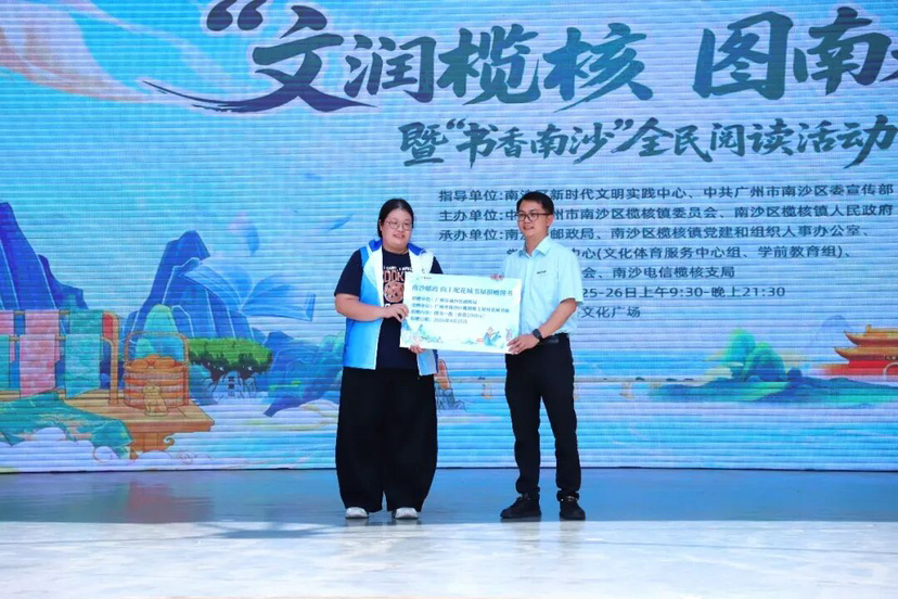 榄核镇相关负责人与南沙区邮政局领导依次登台,发表简短真挚的致辞,勉励广大干部群众将阅读融入日常生活。随后,南沙邮政现场向上坭村花城书屋捐赠价值2000元的图书,以实际行动为乡村阅读阵地注入坚实力量。