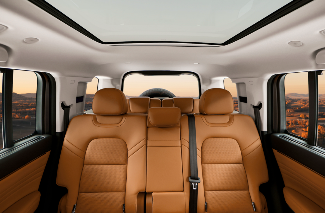 猛龙PLUS七座版延续方盒子硬朗设计风格,以“方圆之道,棱角之美”打造稳重气场。车身尺寸方面,车长超4.9米、车高超1.9米,轴距达2850mm,为三排布局提供扎实基础。车内采用2+3+2黄金座椅布局,三排座椅可灵活折叠,后两排纯平放倒后可形成超大平面空间,后备箱容积从59L扩展至1549L,既能满足三代同堂出行,也可适配露营、长途自驾等装载需求。