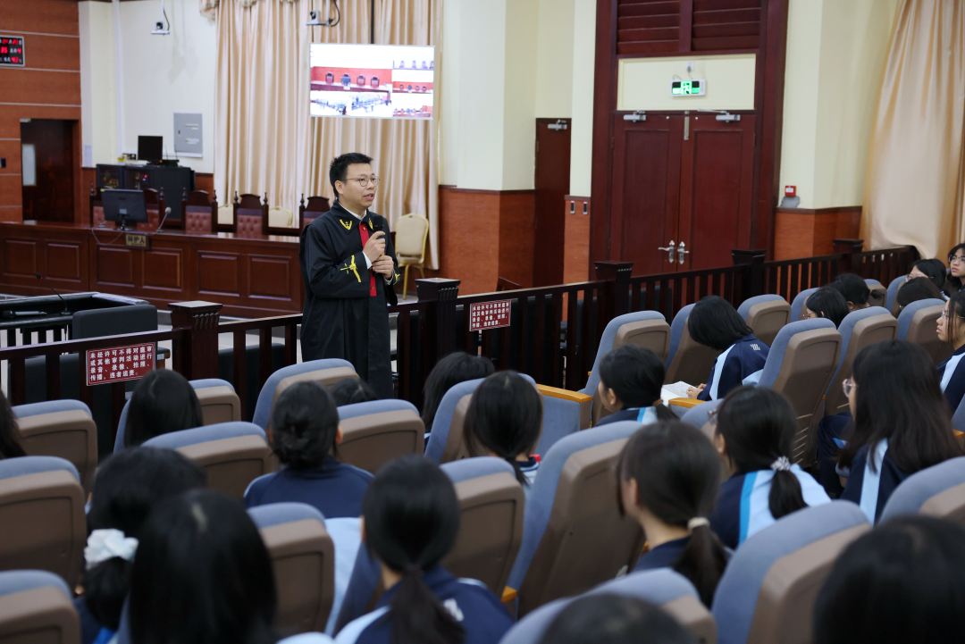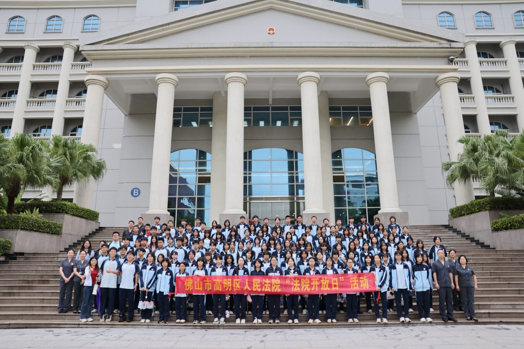 4月23日下午,佛山市高明区人民法院举办开放日活动,邀请高明纪念中学高一年级的150名学生零距离体验法院工作,通过“旁听庭审+普法互动+实地参观”的多元形式,感受司法权威,增强法治观念。