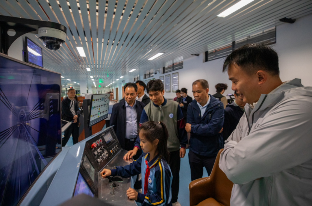 本次开放日还邀请增城区科教城小学约240名师生进校沉浸式体验地铁列车模拟驾驶、轨道交通实体建模、无人机组装与调试、轨道交通服务礼仪与职业体验、机器人技术应用实践5个项目课程。孩子们在教师和志愿者引导下走进产教融合基地等实训场景,探秘铁路职业。