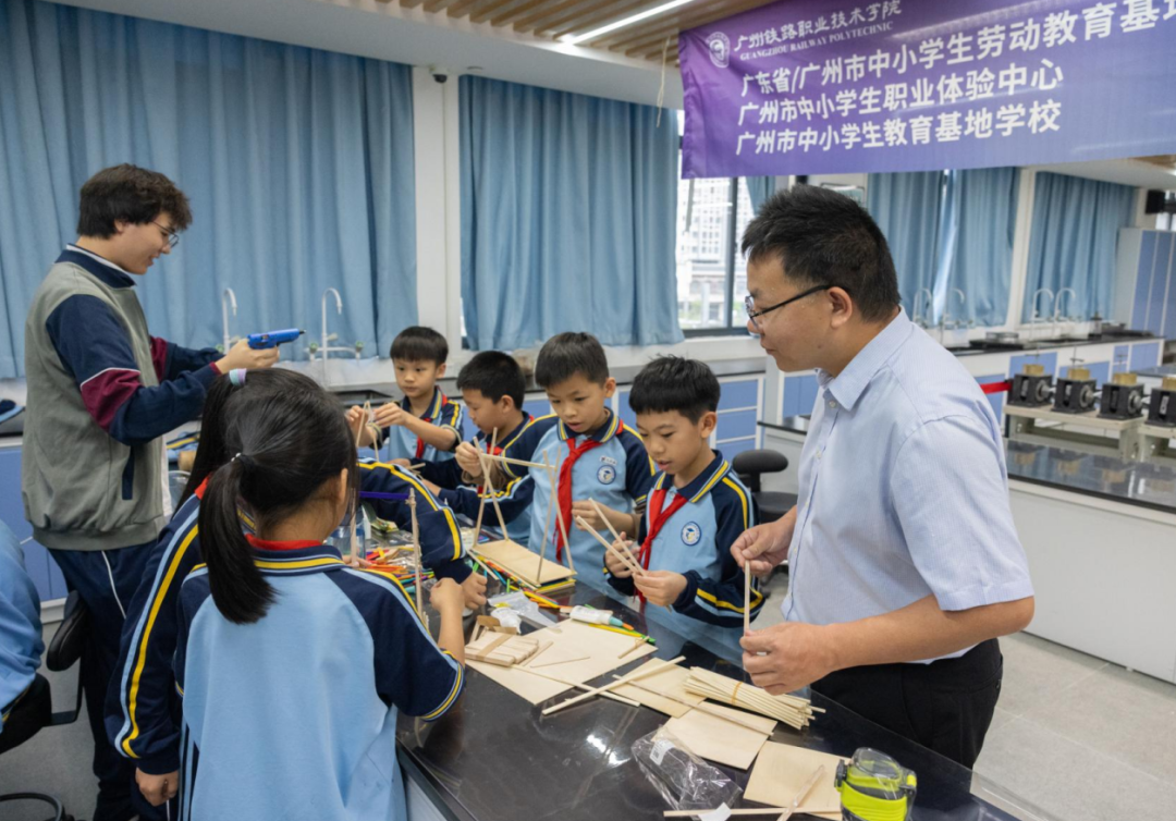 作为广东省劳动教育基地、广州市中小学生职业体验中心,广州铁职院已构建服务中小学生的“铁”“职”特色劳动教育课程体系,并与朱村中新教育指导中心密切合作,与14所中小学校结成稳定合作关系。截至目前,广州铁职院已通过组织中小学生进校实践和送教上门等方式服务中小学生5000余人。