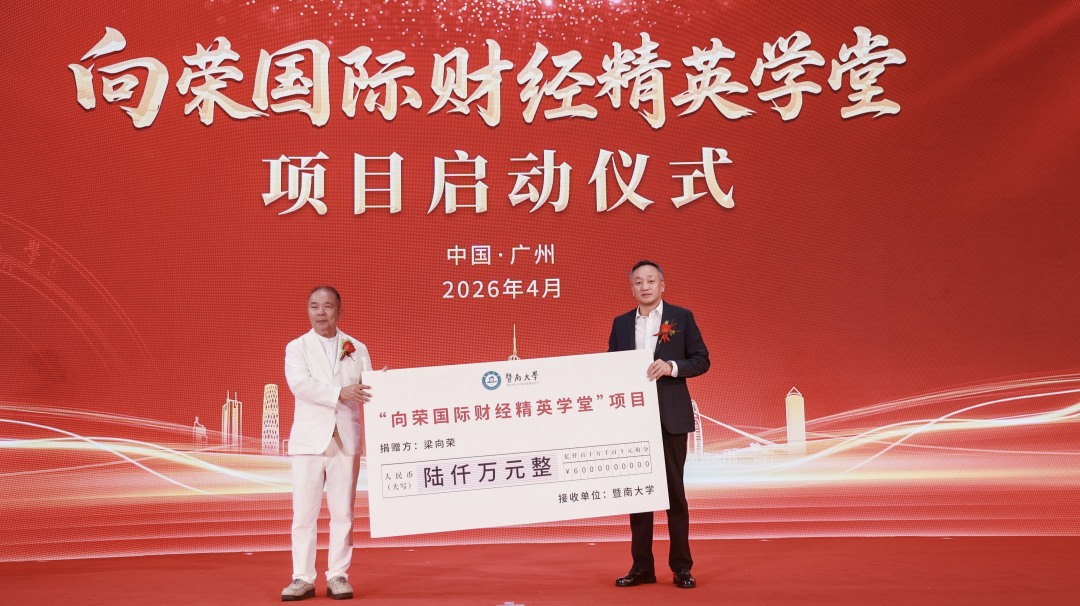近日,“向荣国际财经精英学堂”项目启动仪式在暨南大学管理学院举行。81岁开平籍香港慈善家、香港向荣投资有限公司董事梁向荣向暨南大学捐赠6000万元,设立“向荣国际财经精英学堂”。该公益项目正式落户暨南大学,暨大将携手上海财经大学、对外经济贸易大学、西南财经大学三所财经高校协同共建,致力于财经课程改革与学科建设,着力培养兼具全球视野与家国担当的高素质国际化财经人才。