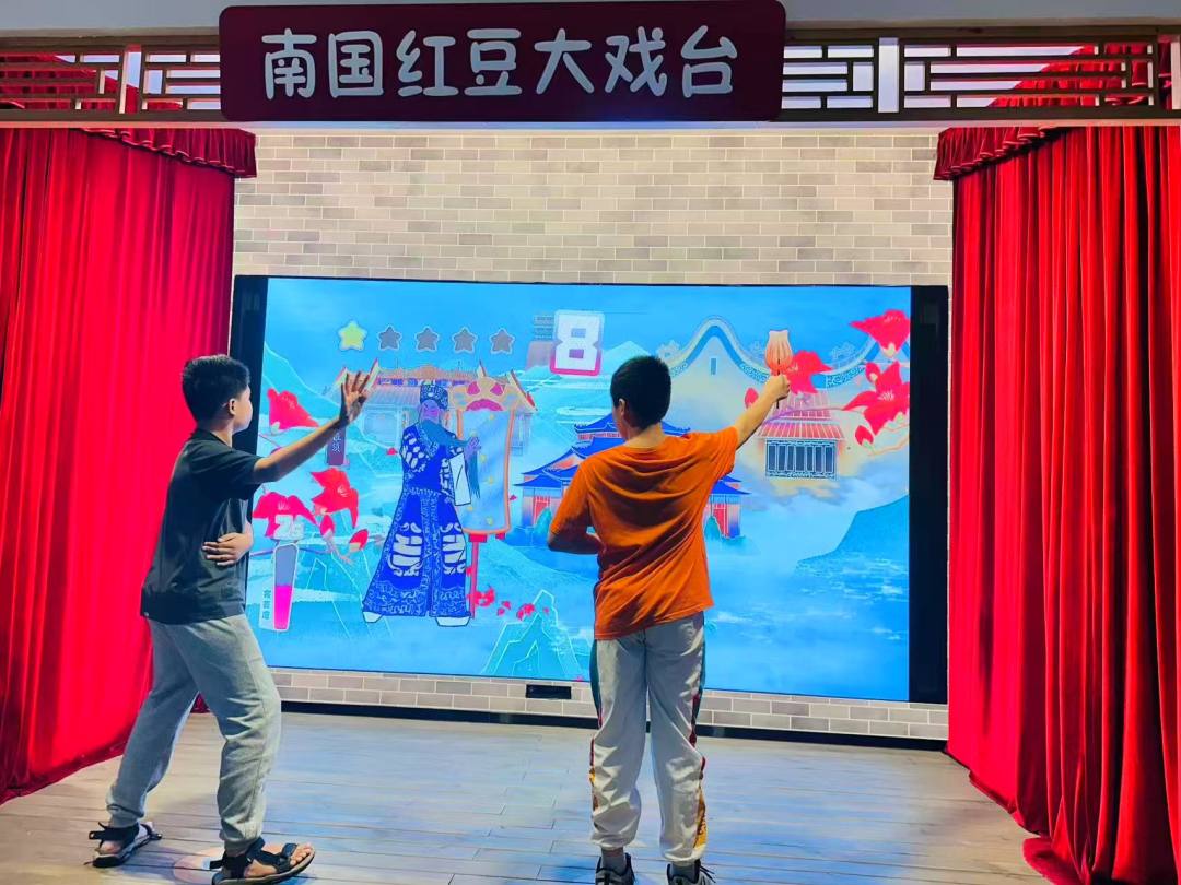 粤剧文化区则布置了精美的粤剧服饰、头饰和道具,工作人员为孩子们介绍了粤剧的角色分类、唱腔特点,还邀请孩子们试戴粤剧头饰、触摸戏服,让孩子们在近距离接触中,感受粤剧文化的精致与典雅。