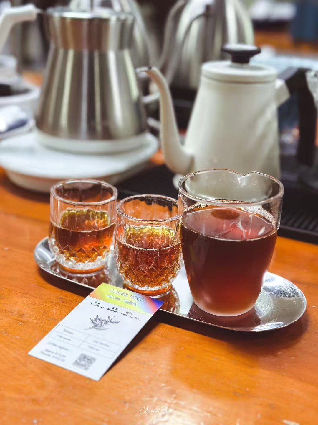 在浅度烘焙下,豆子保留了最原始的风味,酸度高,甜度中,苦度低,主调是花香、果香和草本风味,喝起来像一杯花果茶。