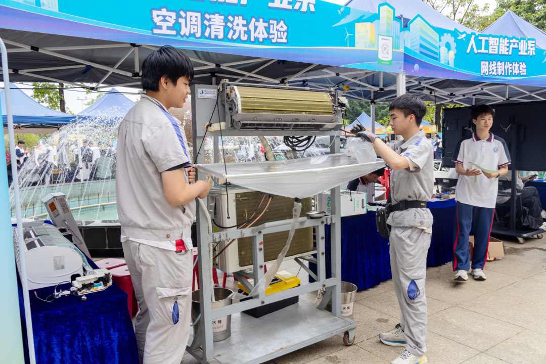 为让学生近距离接触产业前沿技术,本届科技节特别设置了13项企业产品展示体验活动和8项技能展示体验活动。各展位前人潮涌动,学生在互动体验中加深了对行业前沿的理解。