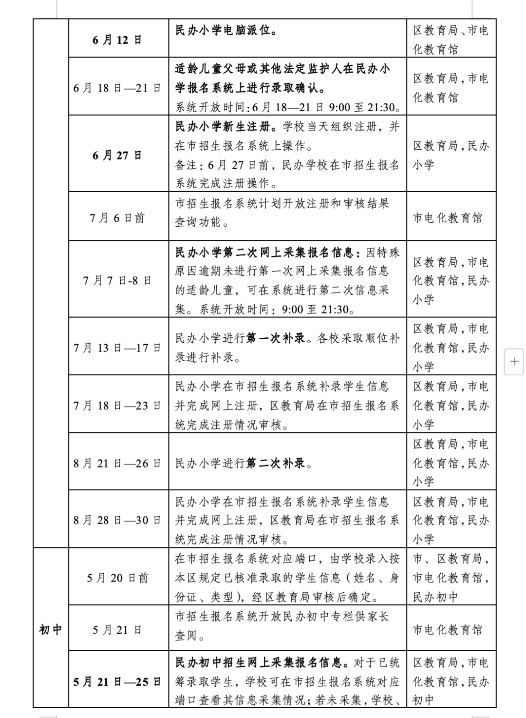 未完成招生计划及注册报到后有缺口的民办学校,第一次补录采取顺位补录方式进行补录,第二次补录以自主招生的方式进行补录。民办学校可在学校微信公众号公布剩余学位,严格按免试入学的规定进行补录。拟补录名单报区教育局审核通过后正式录取。原则上符合本区录取条件且尚未被本区民办学校录取的适龄儿童少年均可参加补录。