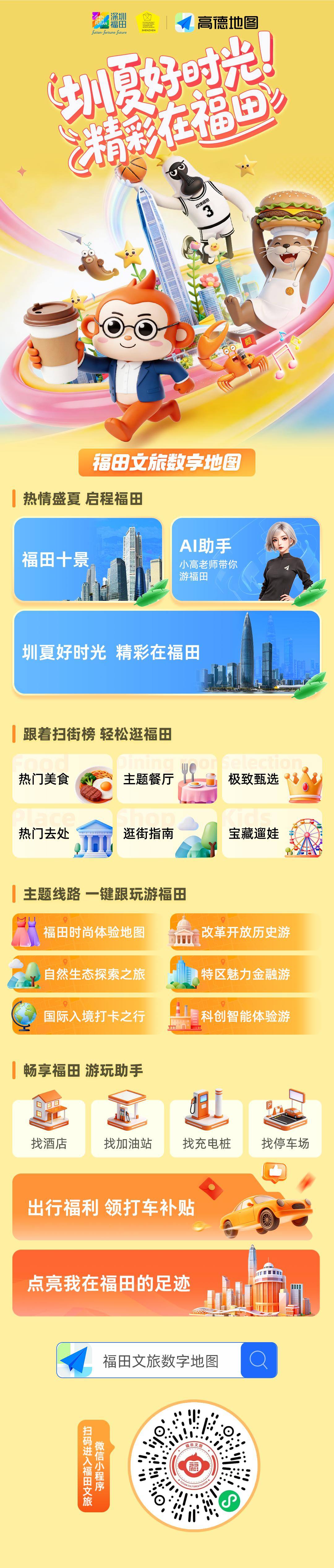 即日起,用户登录高德地图APP搜索“福田文旅数字地图”或扫描二维码,即可接入这一基于LBS(基于位置的服务)构建的全新智慧文旅服务入口。此次升级也是福田区在“文旅+科技”融合领域的一次重要技术落地,通过深度整合高德地图的相关能力,该项目正推动更多用户在“圳夏好时光”中,随时随地畅享更智能、更舒心的精彩福田之旅。