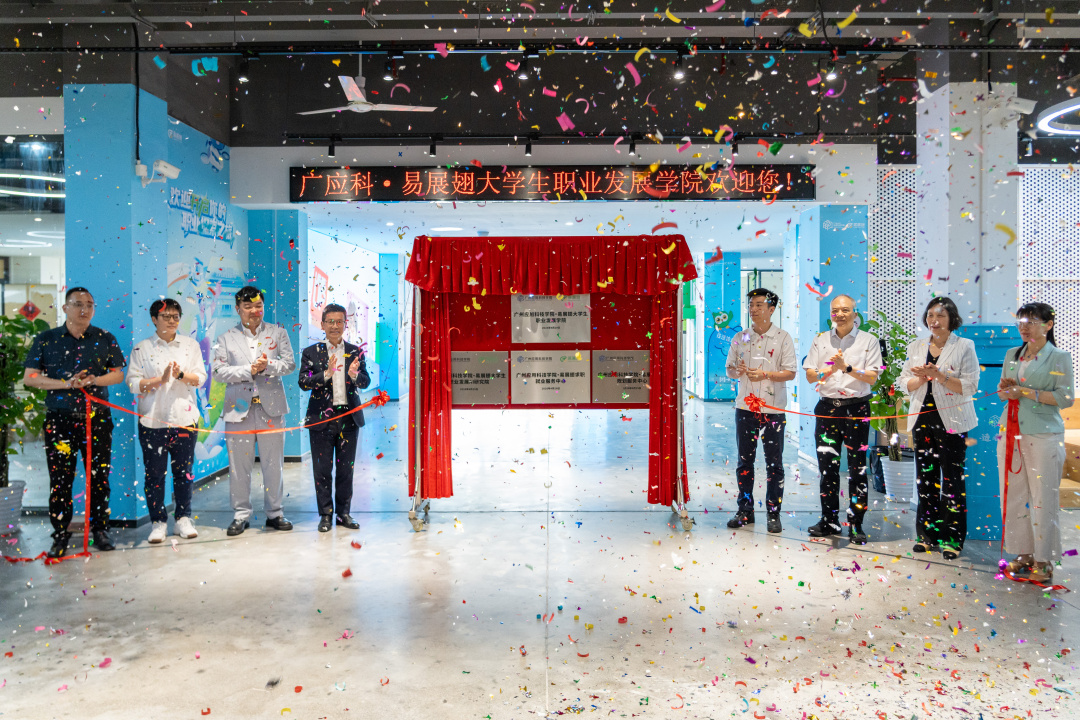 在全体嘉宾和师生代表的见证下,广应科易展翅大学生职业发展学院正式成立。