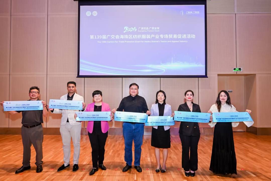 4月30日下午,“广货优品 广贸全球”第139届广交会海珠区纺织服装产业专场贸易促进活动在广州国际轻纺城举办,吸引了来自美国、法国、沙特、马来西亚、斯里兰卡等多个国家及地区的40多家国际采购商代表,与海珠本土精心筛选的40多家优质纺织服装企业精准对接、高效洽谈,共同探索合作新机遇。