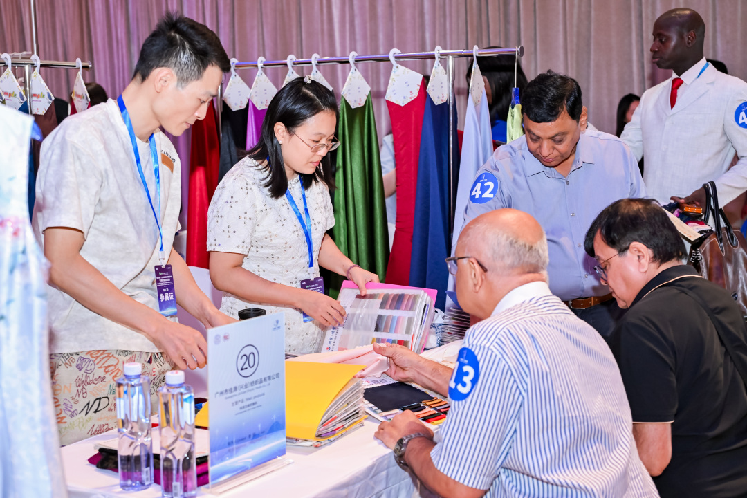 在现场,供应商集中展示核心产品、创新面料与时尚新品。据了解,此次专场活动是海珠区“会展+产业”系列品牌活动的第三场大型专场,接续人工智能、汽车产业专场,通过“以需定供、精准配对”的模式,打破信息壁垒,实现供需资源高效匹配。活动以海外采购需求为导向,定向邀约中大纺织商圈优质供应商,搭建平台推动供需双方“一对一”深度互动了解,从而促成实质性的合作订单落地,加速海珠区纺织服装产业出海,为拓展国际市场注入新动能。